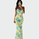 Αριάδνη – Σατέν Φόρεμα με Ρομαντικό Λουλουδάτο Σχέδιο