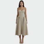 Η τέχνη της κομψότητας συναντά την άνεση σε ένα μοναδικό σχέδιο που αγκαλιάζει τη σιλουέτα με χάρη. Το εφαρμοστό μπούστο με τις λεπτές τιράντες αναδεικνύει το ντεκολτέ, ενώ η αέρινη φούστα προσφέρει ελευθερία κινήσεων, ιδανική για κάθε σας βήμα. Είναι η τέλεια επιλογή για βραδινές εξόδους ή κομψά καλέσματα, προσφέροντας μια αίσθηση διαχρονικής γοητείας.
