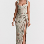 Η απόλυτη έκφραση της κομψότητας και της θηλυκότητας, αυτό το φόρεμα αγκαλιάζει τη σιλουέτα με μοναδική άνεση. Το δραματικό σκίσιμο προσθέτει μια ακαταμάχητη γοητεία, ενώ η κομψή λαιμόκοψη αναδεικνύει τη θηλυκή γραμμή. Φτιαγμένο από υλικά υψηλής ποιότητας, προσφέρει μια πολυτελή αίσθηση που είναι ιδανική για βραδινές εξόδους και επίσημες περιστάσεις, κάνοντάς σας να νιώθετε αυτοπεποίθηση και στυλ.