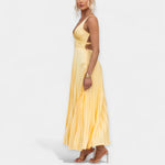 Δάφνη – Κίτρινο Πλισέ Μάξι Φόρεμα με Ρομαντική Αίσθηση