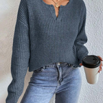 Ανακαλύψτε την απόλυτη ισορροπία ανάμεσα στην άνεση και την κομψότητα. Το μαλακό πλεκτό από μίγμα μαλλιού αγκαλιάζει απαλά το σώμα, προσφέροντας ζεστασιά και ευελιξία. Η V λαιμόκοψη και οι ραμμένες άκρες προσθέτουν μία διαχρονική αίσθηση, κάνοντάς το ιδανικό για κάθε περίσταση, είτε πρόκειται για casual εξόδους είτε για πιο επίσημες στιγμές. Η cropped εφαρμογή του αναδεικνύει τη σιλουέτα, καθιστώντας το ένα απαραίτητο κομμάτι για την γκαρνταρόμπα σας.