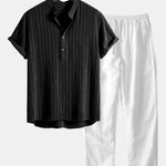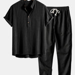 Η αίσθηση της κομψότητας συναντά την καθημερινή άνεση με μία μοναδική πρόταση που ενσωματώνει ελαφριά και αναπνέοντα υφάσματα. Κατασκευασμένο για να αγκαλιάζει το σώμα, αυτό το σετ προσφέρει μια αβίαστη σιλουέτα, ιδανική για κάθε περίσταση, από τις χαλαρές βόλτες μέχρι τις πιο επίσημες εμφανίσεις. Η ποιότητα των υλικών διασφαλίζει ότι θα νιώθετε πάντα υπέροχα, ενώ η εκλεπτυσμένη αισθητική του σας επιτρέπει να ξεχωρίζετε με στυλ.
