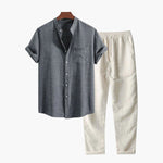 Ανακαλύψτε την ελευθερία κινήσεων και την εκλεπτυσμένη αισθητική που προσφέρει αυτό το σύνολο. Κατασκευασμένο από ελαφριά, αναπνεύσιμα υφάσματα, συνδυάζει την καθημερινή άνεση με μια αίσθηση κομψότητας, ιδανικό για ζεστές καλοκαιρινές αποδράσεις ή χαλαρές βόλτες στην πόλη. Η προσεγμένη του σχεδίαση εξασφαλίζει ότι μπορείτε να το φορέσετε σε κάθε περίσταση, προσφέροντας μία αβίαστη, αλλά εκλεπτυσμένη εμφάνιση.
