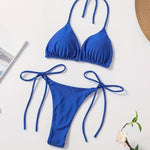 Αυτό το κομψό σύνολο προσφέρει μοναδική άνεση και στυλ, ιδανικό για τις καλοκαιρινές σας εξορμήσεις. Το σχεδιασμένο χάλτερ top παρέχει εξαιρετική στήριξη, αναδεικνύοντας το ντεκολτέ σας, ενώ η V γραμμή του σλιπ κολακεύει τη σιλουέτα, προσφέροντας μια σαγηνευτική αίσθηση. Κατασκευασμένο από ελαστικό ύφασμα που στεγνώνει γρήγορα, είναι η τέλεια επιλογή για παραλία, πισίνα ή κοσμοπολίτικα beach parties.