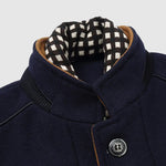 Ένα αριστούργημα που συνδυάζει απαλή υφή και εκλεπτυσμένο στυλ. Κατασκευασμένο από υψηλής ποιότητας μείγμα μαλλιού, αυτό το κομμάτι προσφέρει αίσθηση άνεσης και ζεστασιάς, ιδανικό για κάθε στιγμή της ημέρας. Οι κομψές λεπτομέρειες, όπως το όρθιο κολάρο και τα γυαλιστερά μεταλλικά κουμπιά, αναδεικνύουν τη διαχρονική κομψότητα, κάνοντάς το κατάλληλο για καθημερινές ή πιο επίσημες περιστάσεις.