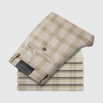 Η αίσθηση του εξαιρετικού υφάσματος που αγκαλιάζει το σώμα, συνδυάζει την απαλή υφή του μεταξιού με την αναπνεύσιμη ποιότητα του λιόσελ. Ιδανικό για κάθε εποχή, το παντελόνι προσφέρει μια χαλαρή εφαρμογή που ενισχύει την κομψότητα χωρίς να θυσιάζει την άνεση. Το διαχρονικό καρό σχέδιο το καθιστά ιδανικό για καθημερινές εμφανίσεις ή πιο επίσημες περιστάσεις, προσφέροντας μια αίσθηση αυτοπεποίθησης και στυλ.