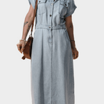Ελένη – Τζιν Φόρεμα με Κοντά Μανίκια και Κομψές Λεπτομέρειες