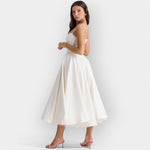 Αθηνά – Λιτό Λευκό Μίντι Φόρεμα με Κομψές Γραμμές