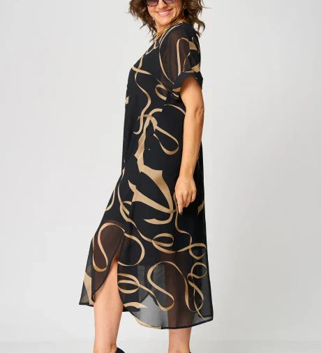 Ελισάβετ – Αέρινο Φόρεμα με Γραμμικά Σχέδια και V Λαιμόκοψη
