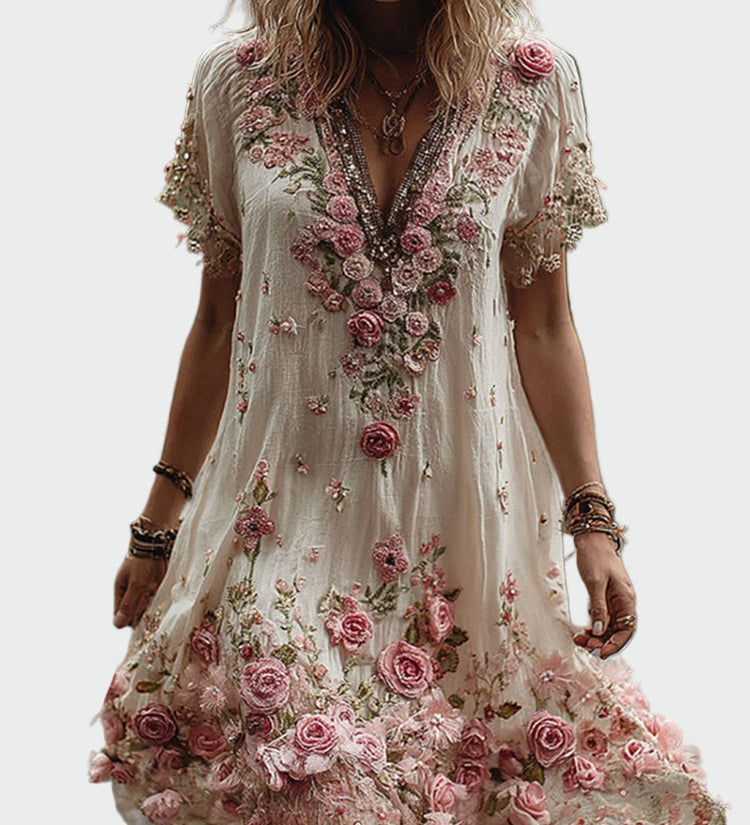Ελισάβετ – Καλοκαιρινό Φόρεμα με Ρομαντικά Λουλούδια