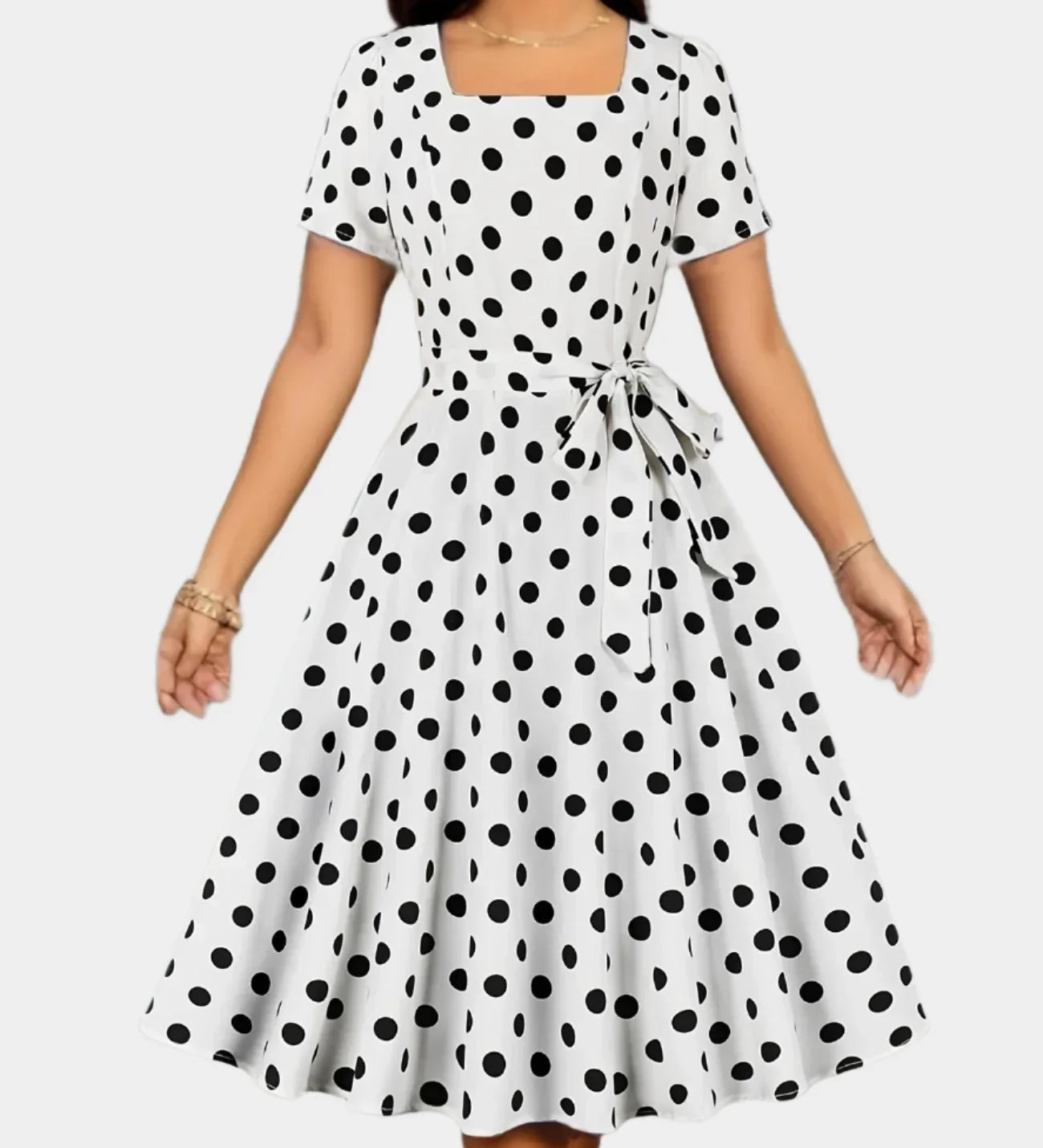Ελισάβετ – Ρετρό Φόρεμα με Πουά Σχέδιο και Ζώνη
