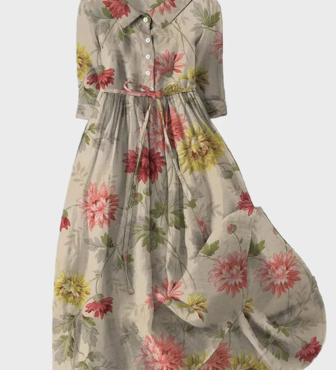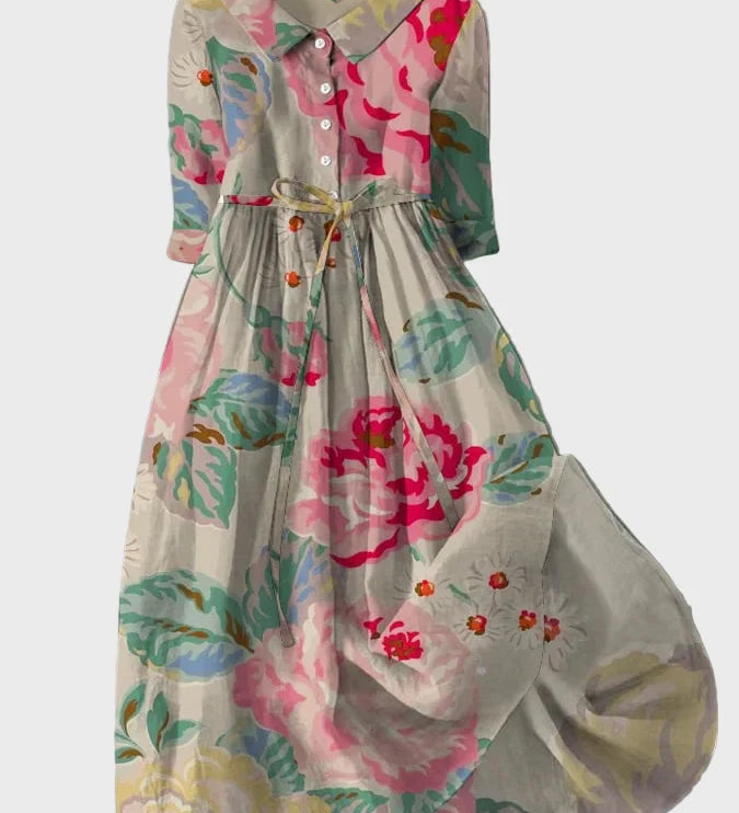 Νεφέλη – Ρετρό Φόρεμα με Λουλουδάτο Μπουκέτο