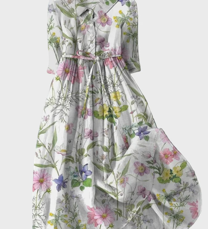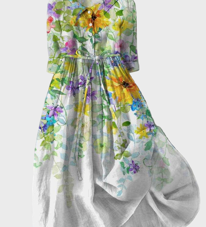 Νεφέλη – Φόρεμα με Ρομαντικά Λουλούδια σε Ακουαρέλα
