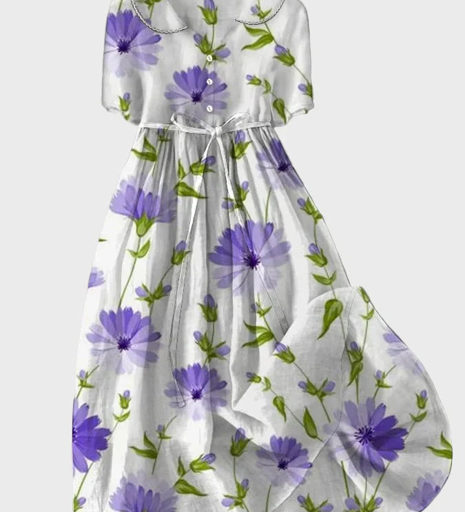 Νεφέλη – Φλοράλ Φόρεμα σε Λεβάντα με Ρομαντικές Λεπτομέρειες