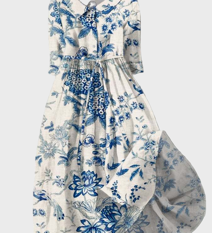 Νεφέλη – Φλοράλ Πορσελάνινο Φόρεμα με Ρομαντικές Λεπτομέρειες