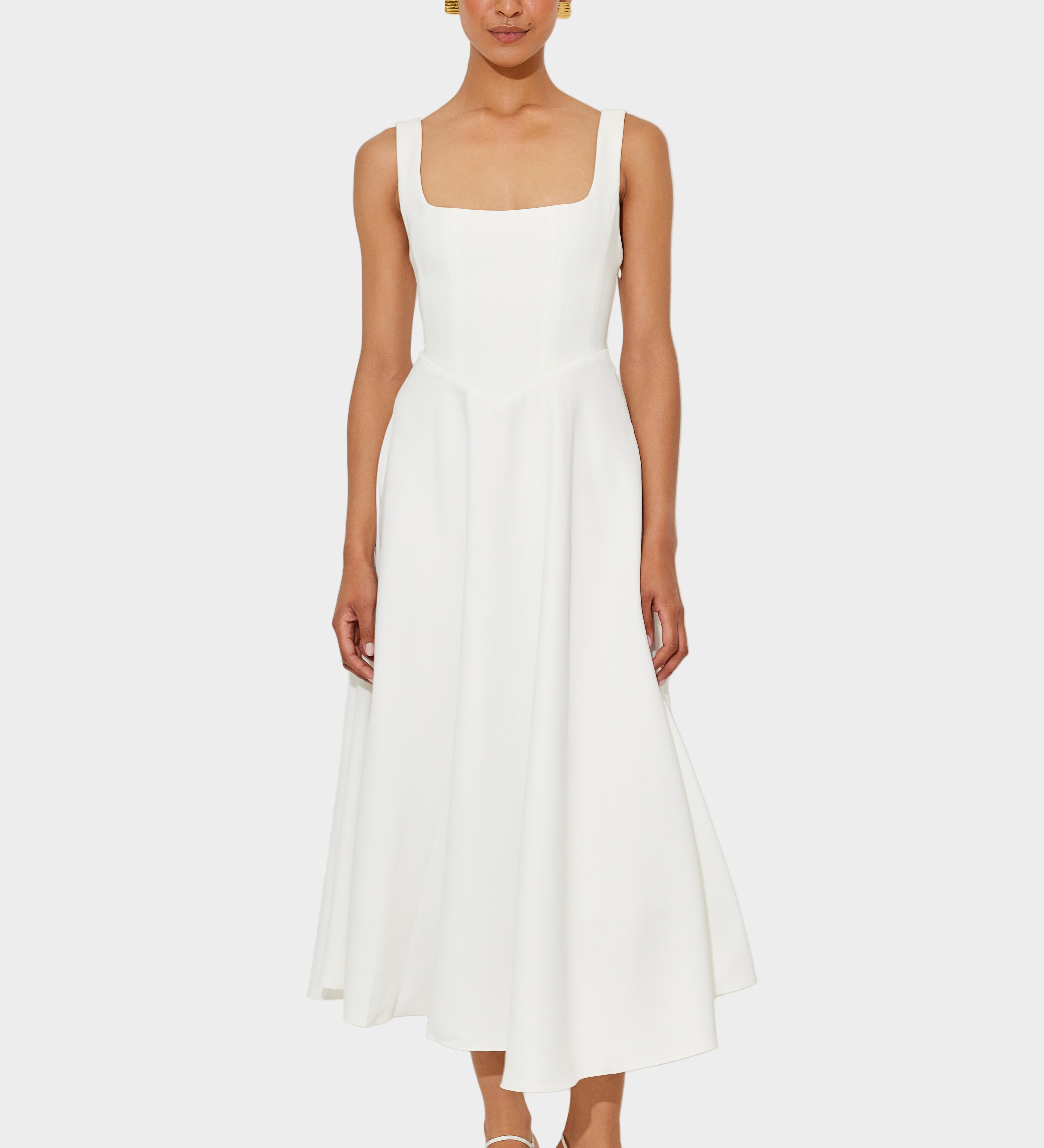 Αθηνά – Λιτό Λευκό Μίντι Φόρεμα με Κομψές Γραμμές