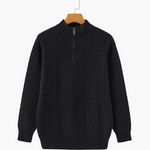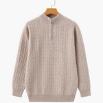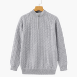 Η τέχνη της κομψότητας συναντά την εξαιρετική ποιότητα σε αυτό το μοναδικό κομμάτι. Φτιαγμένο από εκλεκτό κασμίρ, προσφέρει απαλή αίσθηση και ζεστασιά, κάνοντάς το ιδανικό για κάθε περίσταση, από τις καθημερινές εξόδους μέχρι τις πιο επίσημες συγκεντρώσεις. Οι λεπτομέρειες του μισού φερμουάρ και η ραβδωτή υφή προσθέτουν μια διαχρονική αίσθηση, ενώ η πυκνή πλέξη διασφαλίζει ότι το σχήμα του παραμένει αναλλοίωτο, συνδυάζοντας άψογα στυλ και λειτουργικότητα.