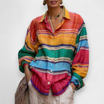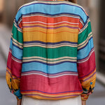 Κατερίνα – Κομψή Λινή Μπλούζα με Ουράνιο Τόξο και Γιακά