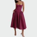 Η τέχνη της κομψότητας συναντά την άνεση σε ένα μοναδικό σχέδιο που αγκαλιάζει τη σιλουέτα με χάρη. Το εφαρμοστό μπούστο με τις λεπτές τιράντες αναδεικνύει το ντεκολτέ, ενώ η αέρινη φούστα προσφέρει ελευθερία κινήσεων, ιδανική για κάθε σας βήμα. Είναι η τέλεια επιλογή για βραδινές εξόδους ή κομψά καλέσματα, προσφέροντας μια αίσθηση διαχρονικής γοητείας.