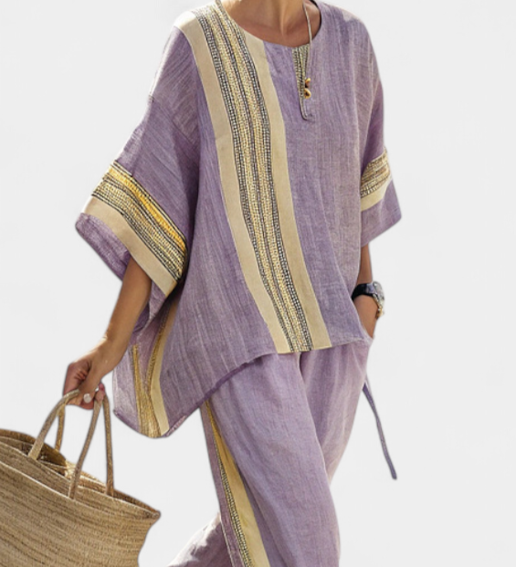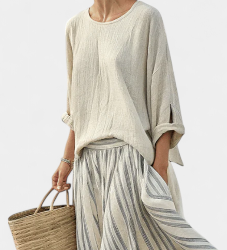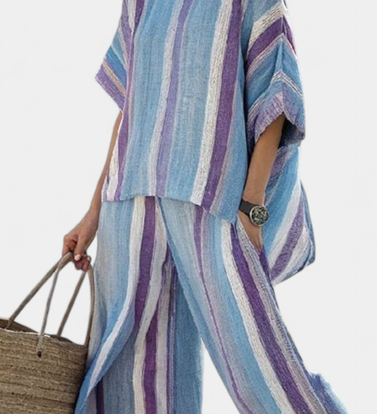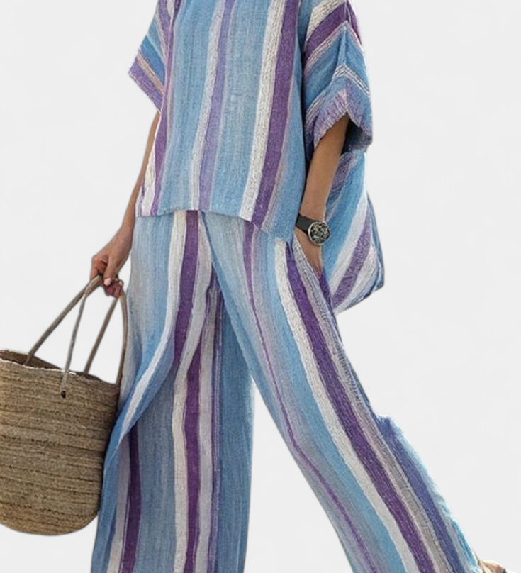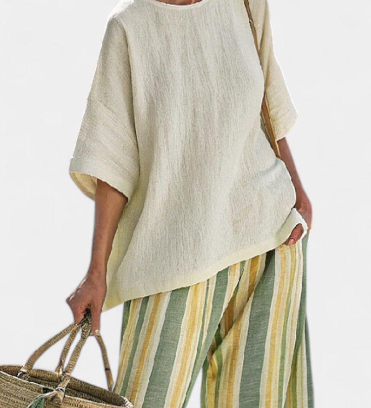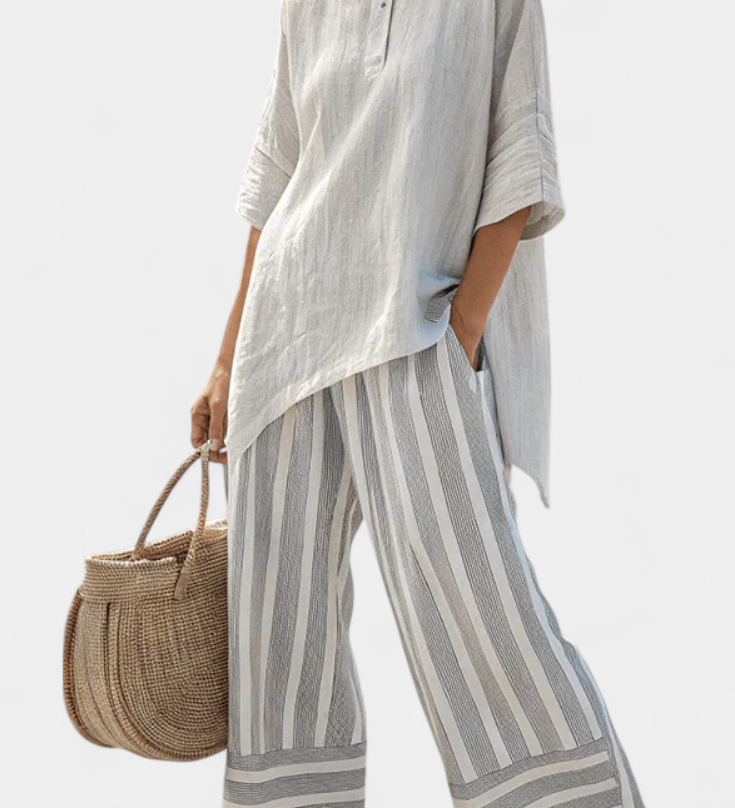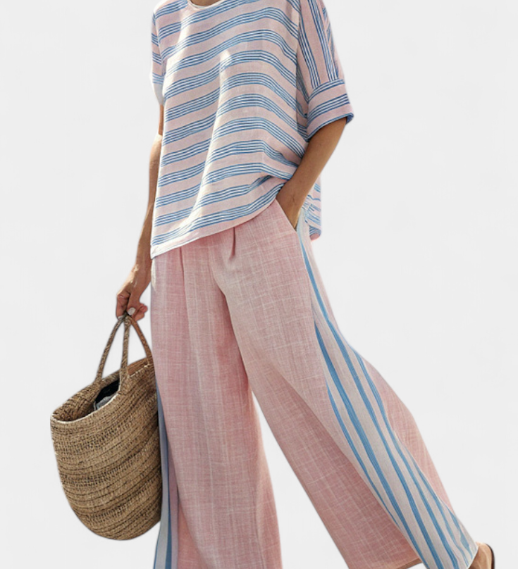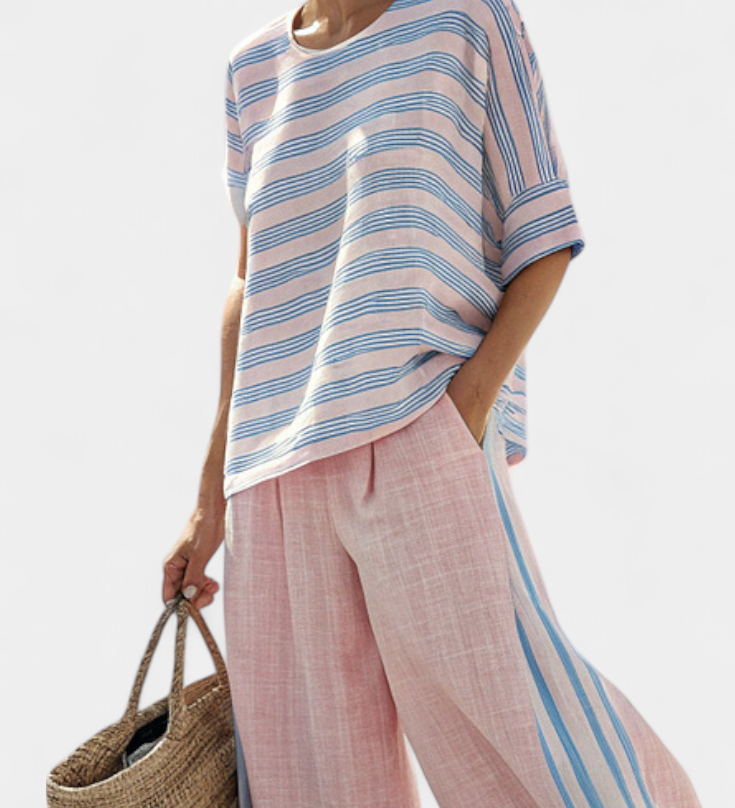 Θάλεια – Λινό Μπαμπού Σετ με Ριγέ Μπλούζα και Ρευστά Παντελόνια
