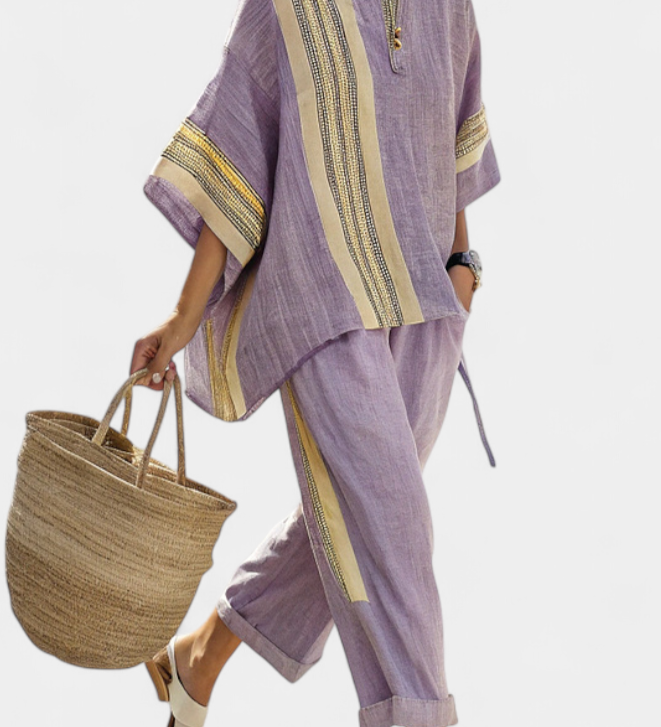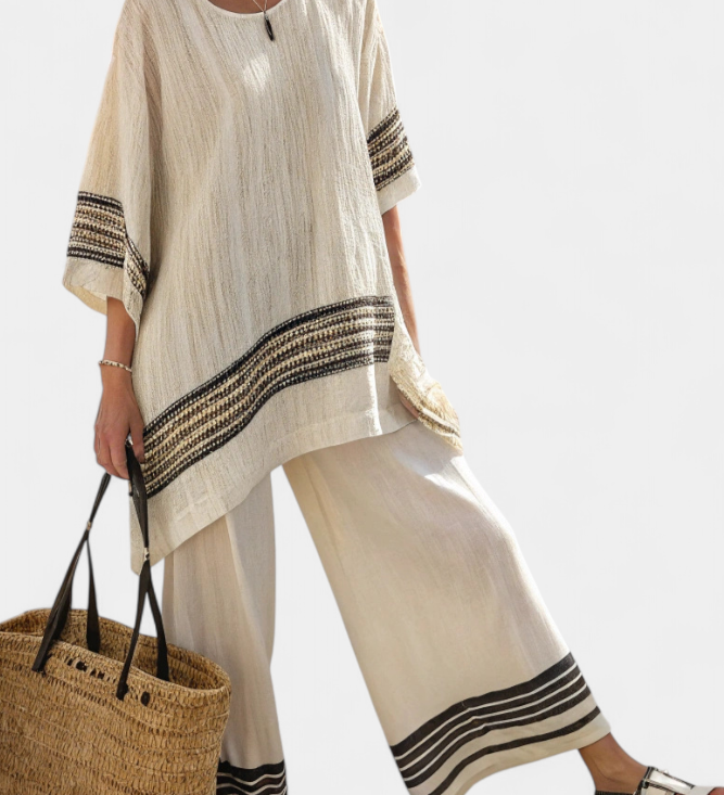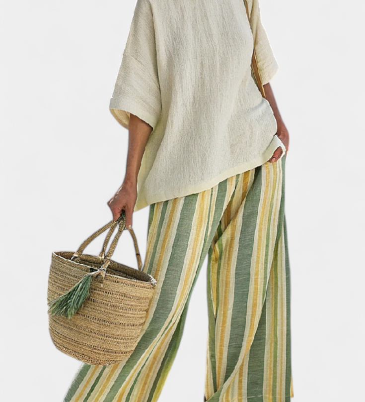Θάλεια – Σαλονάκι από Μπαμπού με Ρίγες και Φαρδιά Παντελόνια