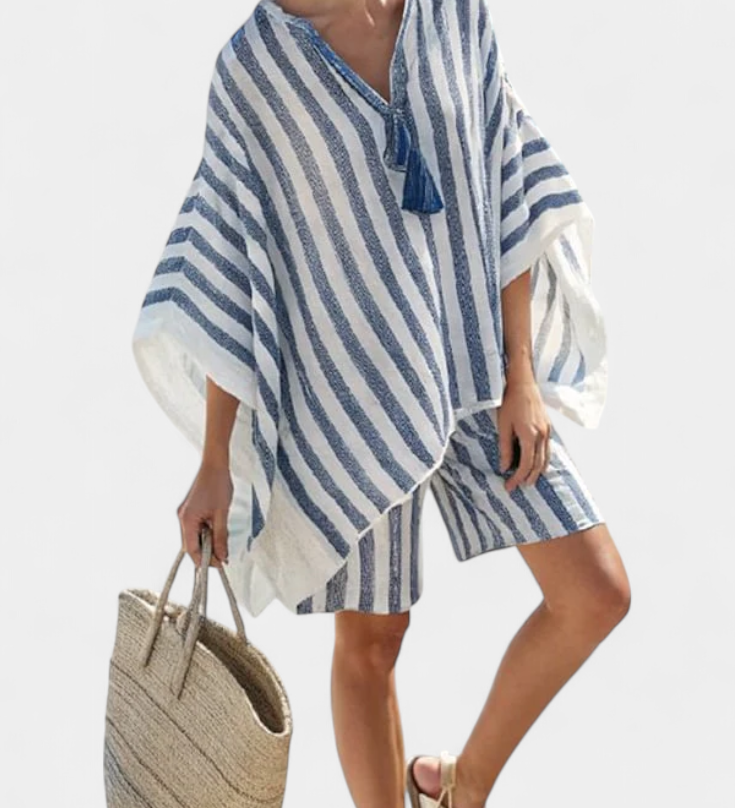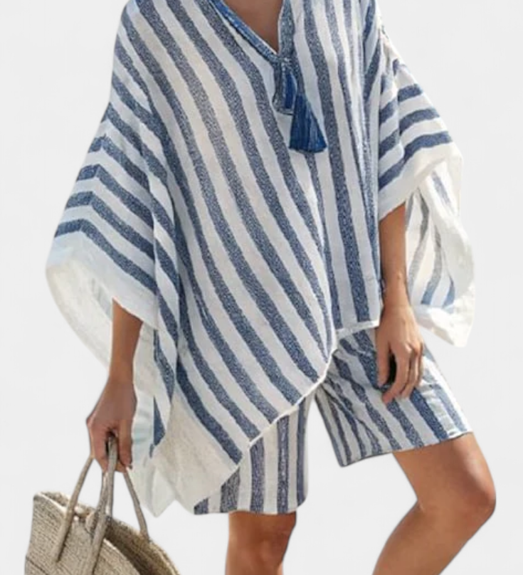 Θάλεια – Λινό Μπαμπού Συνολάκι με Μεσογειακές Ρίγες Ελιάς