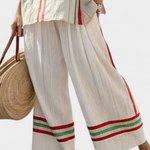 Θάλεια – Λινό Μπαμπού Σύνολο Μεσογείου με Κομψές Ρίγες σε Κόκκινο και Πράσινο