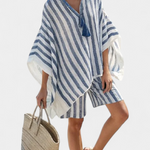 Θάλεια – Ριγέ Σετ με Oversized Μπλούζα και Κομψά Σορτς