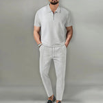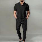 Η απόλυτη σύνθεση άνεσης και κομψότητας σας περιμένει. Κατασκευασμένο από ένα πολυτελές μείγμα υλικών, αυτό το σετ προσφέρει μοναδική αίσθηση και ευχάριστη εφαρμογή. Το αναπνεύσιμο πλεκτό ύφασμα αγκαλιάζει το σώμα, προσφέροντας ελευθερία κινήσεων και ιδανική θερμοκρασία, είτε πρόκειται για μια χαλαρή μέρα στην παραλία είτε για ανεπίσημες εξόδους. Το κομψό κλείσιμο με φερμουάρ στον γιακά ενισχύει την αίσθηση του εκλεπτυσμένου στυλ που αναζητάτε.