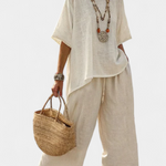 Η κομψότητα συναντά την απλότητα σε ένα σύνολο που αποπνέει φρεσκάδα και ελευθερία. Κατασκευασμένο από ελαφρύ ύφασμα, προσφέρει μια χαλαρή σιλουέτα που αγκαλιάζει το σώμα, επιτρέποντας κάθε κίνηση με άνεση. Ιδανικό για καθημερινές εμφανίσεις ή για ιδιαίτερες περιστάσεις, συνδυάζει την ποιότητα με μια αίσθηση ηρεμίας και ισορροπίας, καθιστώντας το απαραίτητο κομμάτι για τις ζεστές ημέρες.