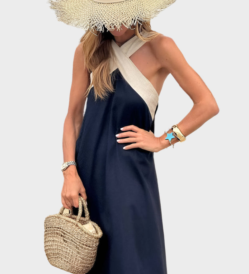 Δάφνη – Κομψό Φόρεμα με Ανοιχτή Πλάτη και Σταυρωτό Λαιμό