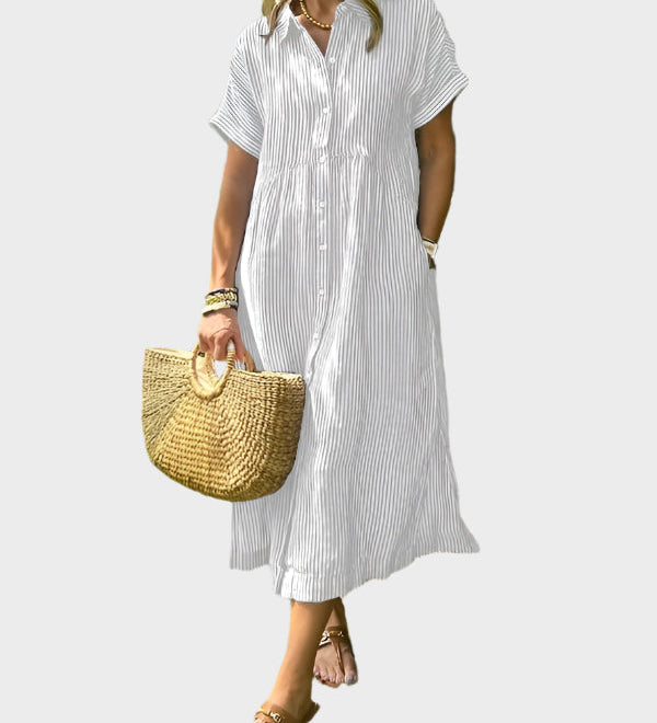 Δάφνη – Ριγέ Φόρεμα με Πτερύγια και Λειτουργικές Τσέπες