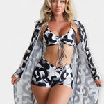 Αυτό το κομψό σετ προσφέρει την ιδανική ισορροπία ανάμεσα στην άνεση και την κομψότητα, ιδανικό για τις καλοκαιρινές σας εξορμήσεις. Το ψηλόμεσο σχέδιο αγκαλιάζει τη σιλουέτα, προσφέροντας άψογη εφαρμογή, ενώ το τοπ με φιόγκο προσθέτει μία διακριτική θηλυκή νότα. Το ελαφρύ κάλυμμα παραλίας ολοκληρώνει την εμφάνιση με στυλ και πρακτικότητα, κάνοντάς το ιδανικό για κάθε περίσταση, από την παραλία μέχρι την πισίνα.