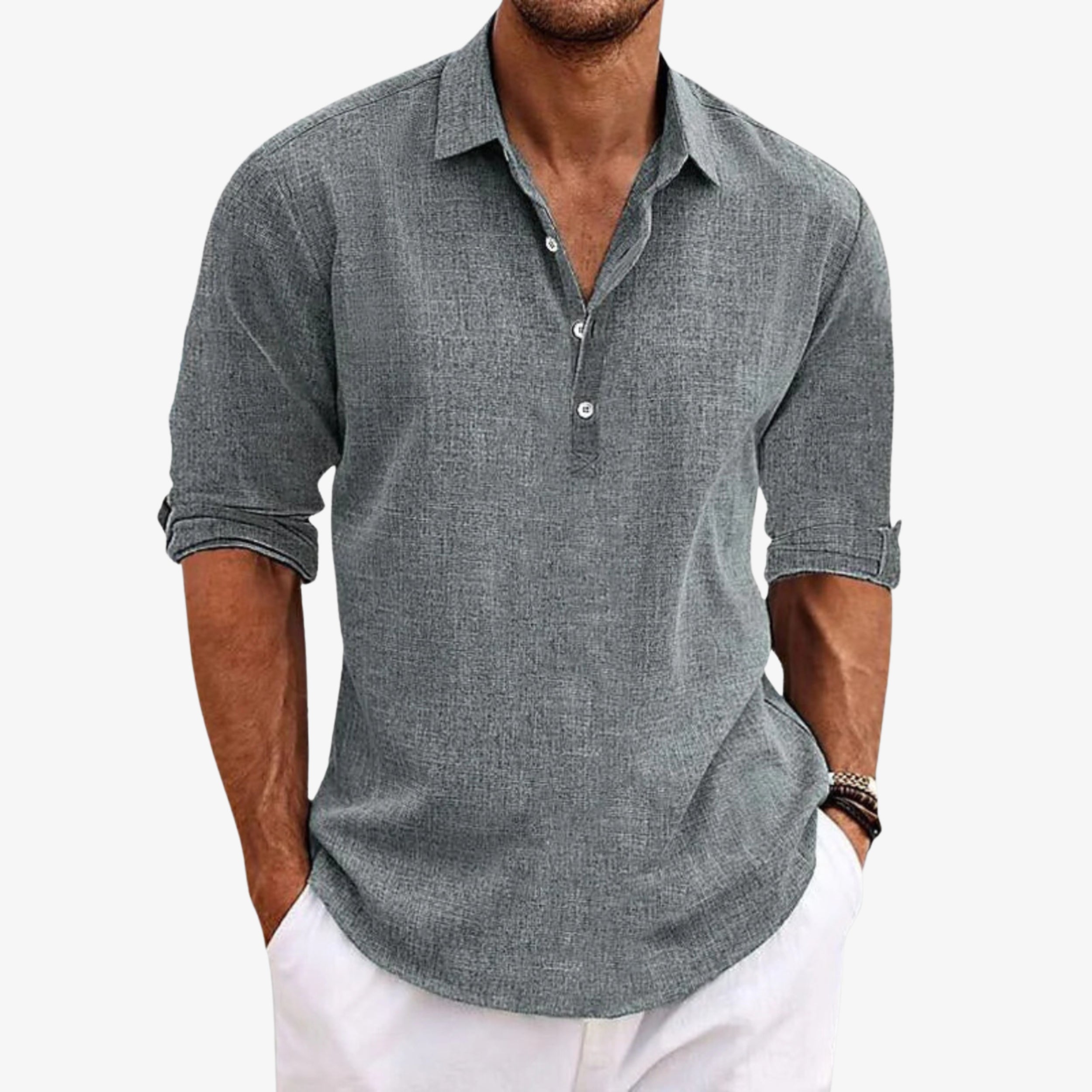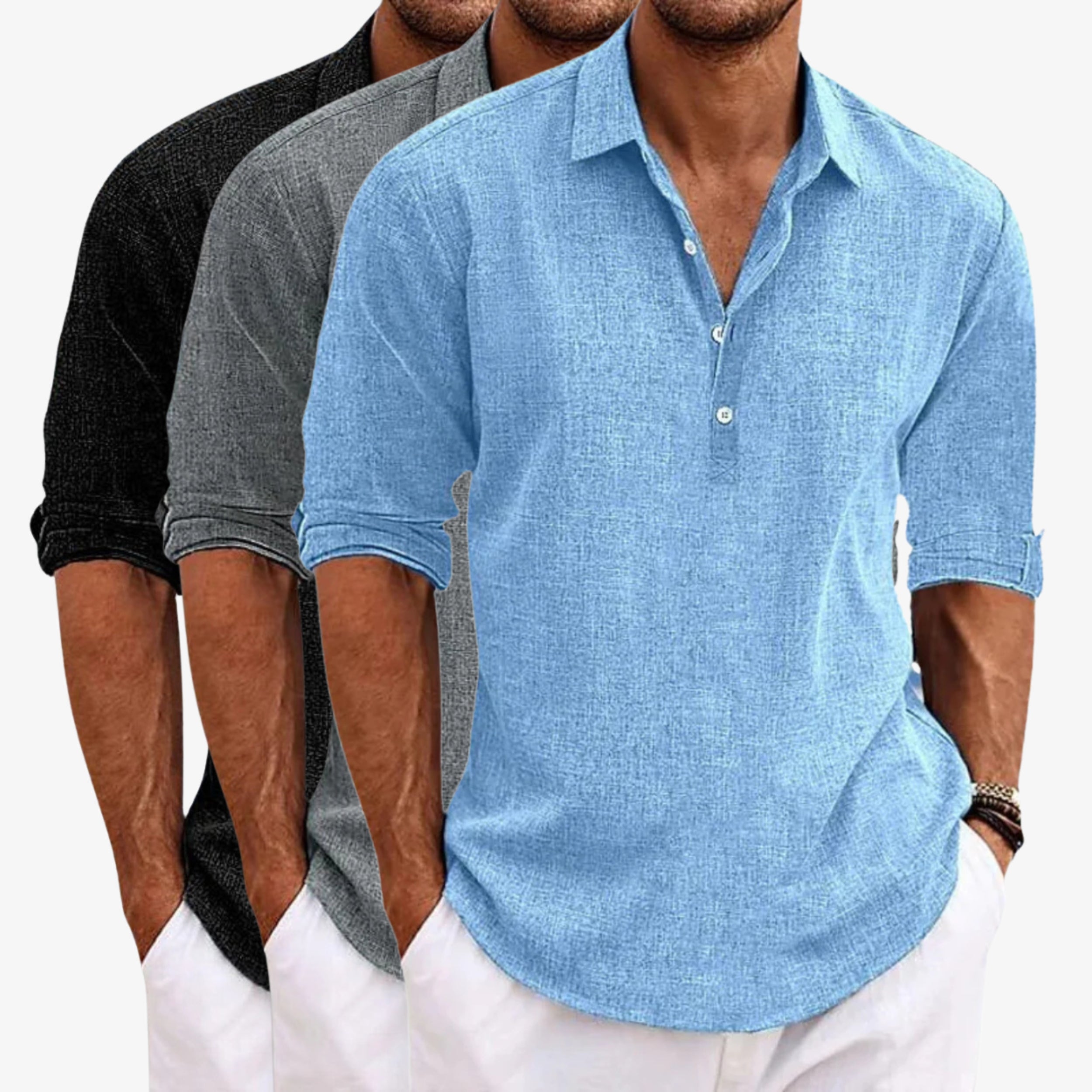 Χρησιμοποιούμε προσεκτικά επιλεγμένα υφάσματα — όπως βαμβάκι, λινό και ποιοτικά μίγματα — για άνεση και αντοχή. Κάποια κομμάτια περιλαμβάνουν συνθετικές ίνες (π.χ. polyester) για καλύτερη εφαρμογή και σταθερότητα.