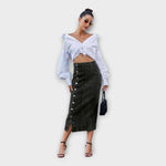 Αυτή η φούστα συνδυάζει την άνεση με την κομψότητα, προσφέροντας μια μοναδική αίσθηση σε κάθε σας εμφάνιση. Κατασκευασμένη από υλικά υψηλής ποιότητας, η απαλή υφή της αγκαλιάζει το σώμα, ενώ ο minimal σχεδιασμός της την καθιστά ιδανική για κάθε περίσταση, από casual μέχρι πιο επίσημες. Είναι το κομμάτι που θα απογειώσει την γκαρνταρόμπα σας, χαρίζοντας σας στυλ και αυτοπεποίθηση.