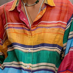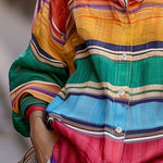 Ειρήνη – Κομψή Λινή Μπλούζα με Ουράνιο Τόξο Γιακά