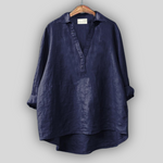 Ειρήνη – Λινή Μπλούζα με Κομψή V Λαιμόκοψη