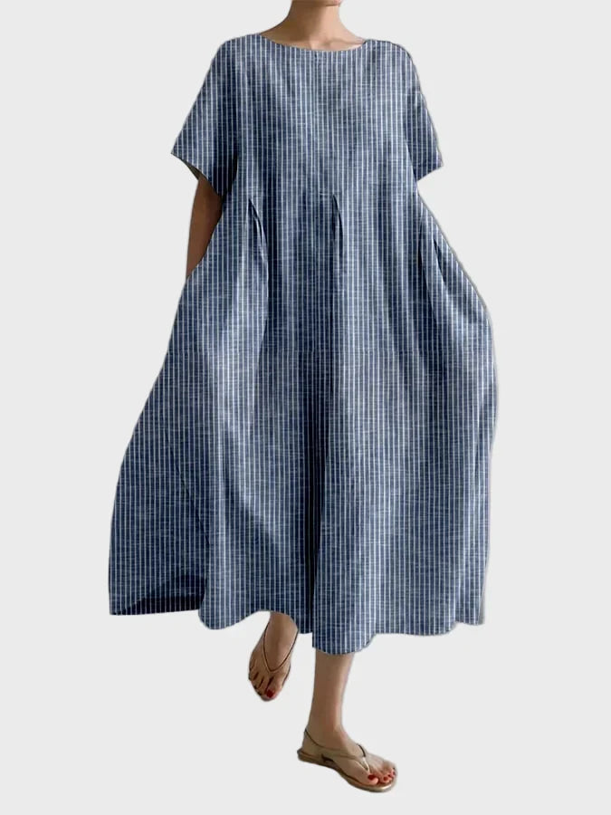 Η αίσθηση της ελευθερίας και της κομψότητας συγχωνεύονται σε ένα μοναδικό κομμάτι. Το ελαφρύ ύφασμα αγκαλιάζει το σώμα, προσφέροντας μια αέρινη αίσθηση που σας συνοδεύει σε κάθε σας βήμα. Ιδανικό για καθημερινές εμφανίσεις ή χαλαρές βόλτες, αυτό το σχέδιο συνδυάζει αρμονικά την κλασική κομψότητα με την άνεση, κάνοντάς το απαραίτητο για κάθε γκαρνταρόμπα.