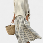 Θάλεια – Oversize Μπλούζα με Ρίγες και Λινή Midi Φούστα Daisy