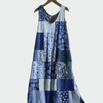 Ιωάννα – Φόρεμα με Μπλε Patchwork Μοτίβο και Ρομαντική Αίσθηση