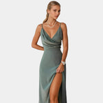 Η μοναδική αυτή δημιουργία συνδυάζει την άνεση με την εκλεπτυσμένη αισθητική, προσφέροντας μια αίσθηση ελευθερίας σε κάθε κίνηση. Τα λεπτά τιράντες και το ντραπέ σχέδιο προσθέτουν μία ρομαντική διάθεση, ενώ το σκίσιμο στο πλάι αναδεικνύει τη σιλουέτα με κομψό τρόπο. Ιδανική επιλογή για βραδινές εξόδους και επίσημες περιστάσεις, αυτή η δημιουργία θα σας κάνει να ξεχωρίσετε με στυλ και χάρη.